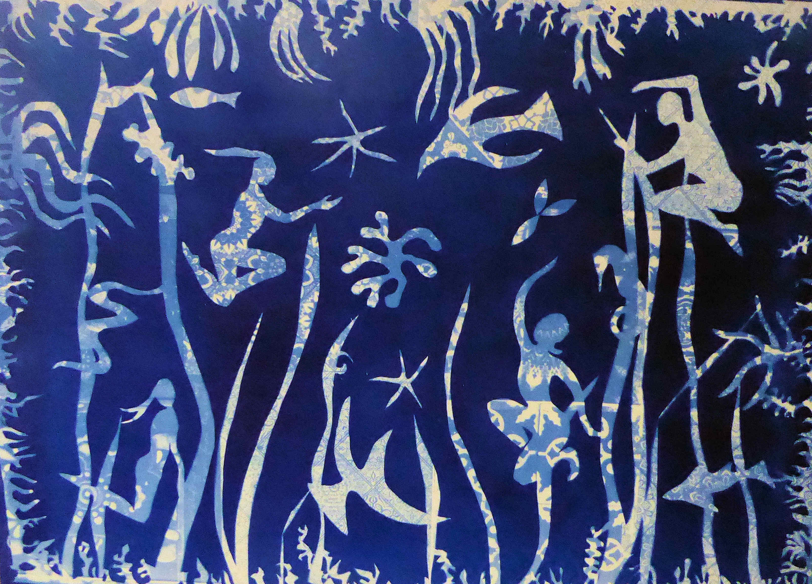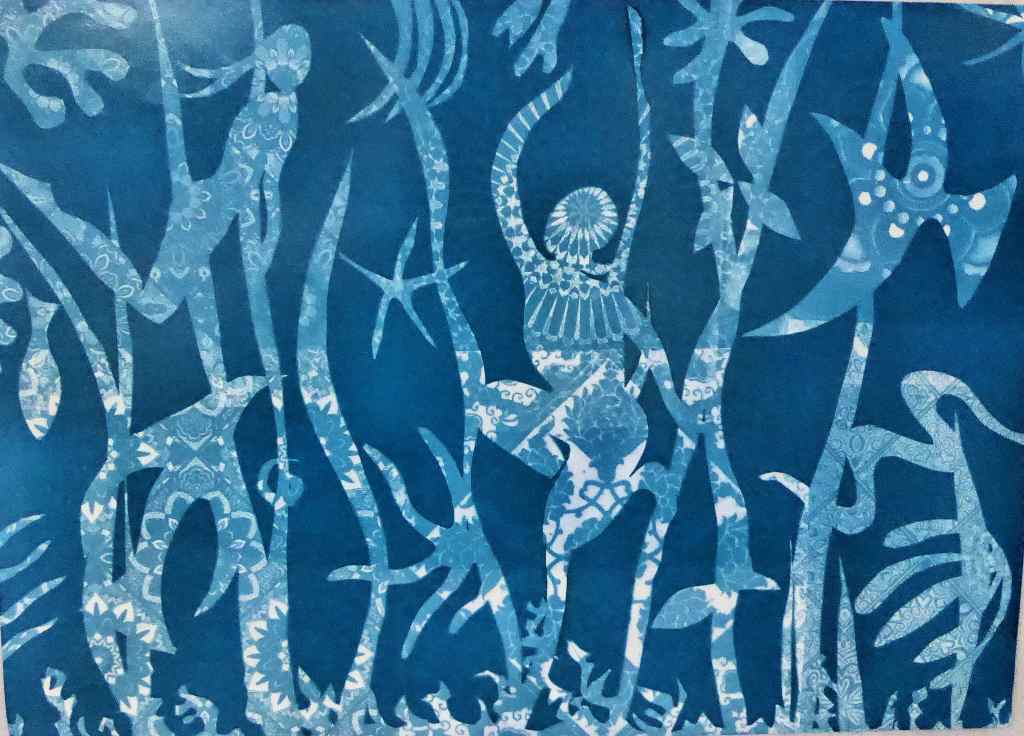 Cyanotypes Bird Series Bottles Series Double Exposure Prints Water Dancer – Cyanotype prints on paper (29.7 x 42.0cm) Water Dancer – Cyanotype prints on paper (29.7 x 42.0cm) Cyanotypes on Vintage Manuscript Paper Cyanotype on vintage music manuscript Cyanotype on vintage music manuscript Cyanotypes on Material Seaweed on canvas Children’s drawings with leaf monoprints Bute park botanical piece i.m. Anna Atkins Philippa and Ruby from The Mother Artist Project